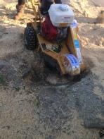 Grafters fencing, tree management and landscape services Own a high tech stump grinder, that grinds tree stumps into small wood chips in a matter of minutes. The machine is positioned in front of the tree stump, the cutting head is passed back and forth over the stump until it is removed completely or to the depth required.